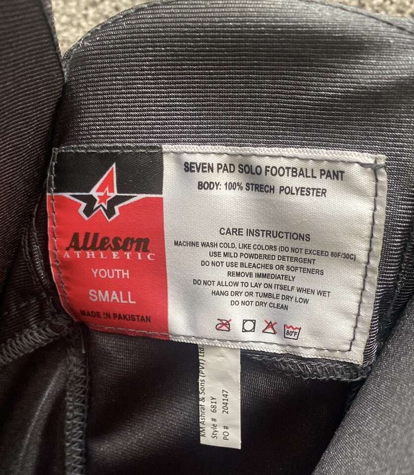 NEW! Seven pad football pants in gray. Adjustable belt. Smoke-free, pet-free home. $18, cash only please.