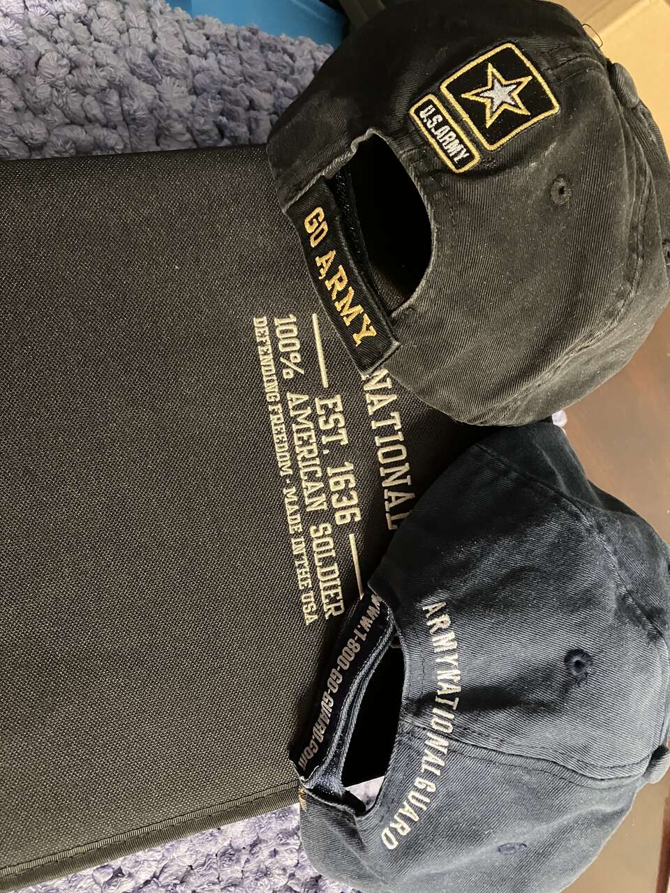 VenmoNATIONAL GUARD ZIPPERED 3-RING BINDER, 10.5 inches wide & 13.5 inches tall. Includes Clear 10 inch 3-hole ruler, 2 Inner Zippered Compartments. 6 Slide-In Inner Compartments. $3.00. BASEBALL-STYLE CAP/HAT: Navy Blue/White National Guard. has Velcro Adjustable Back Strap. $3. One Navy Blue National Guard Panther T-SHIRT size LARGE, 100% Cotton, $3. Cash/Venmo, In Sandy. 801-201-5350. (Army hat in photo already sold)