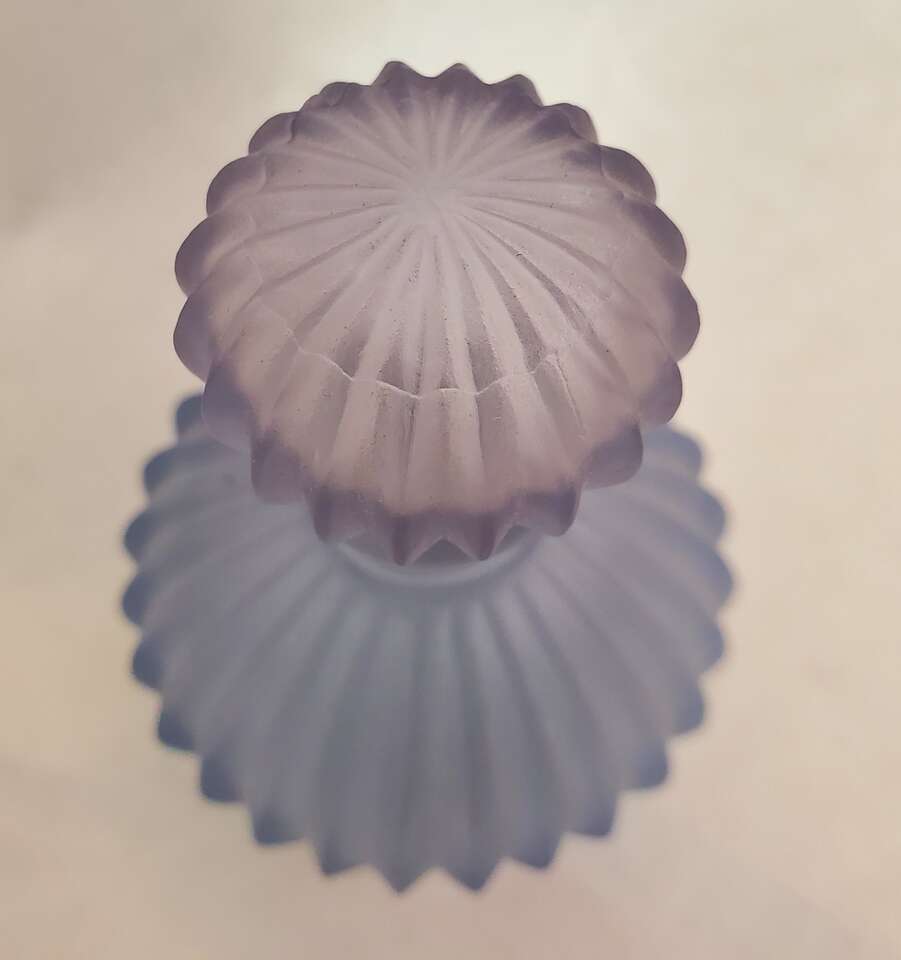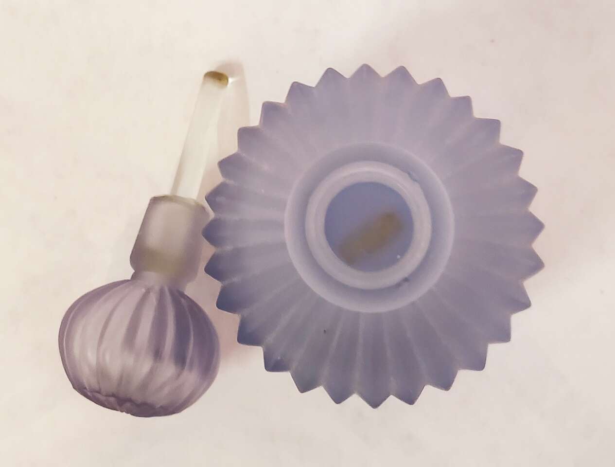 Vintage Frosted Light Purple Ribbed Glass Perfume Decanter with Matching Stopper. Cash Only, No Codes.