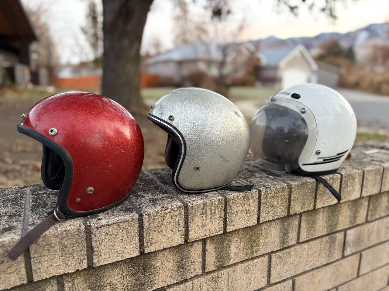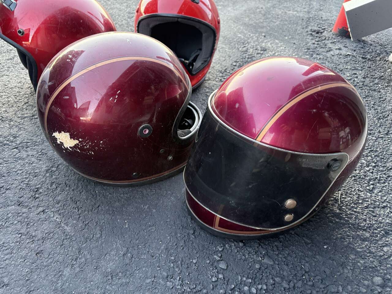 I have a sweet collection of cintage motorcycle helmets. Great way to ride k. Retro style or just decorate your office, garage, shop, etc. Most helmets around $30-$50 depending on model and some are more