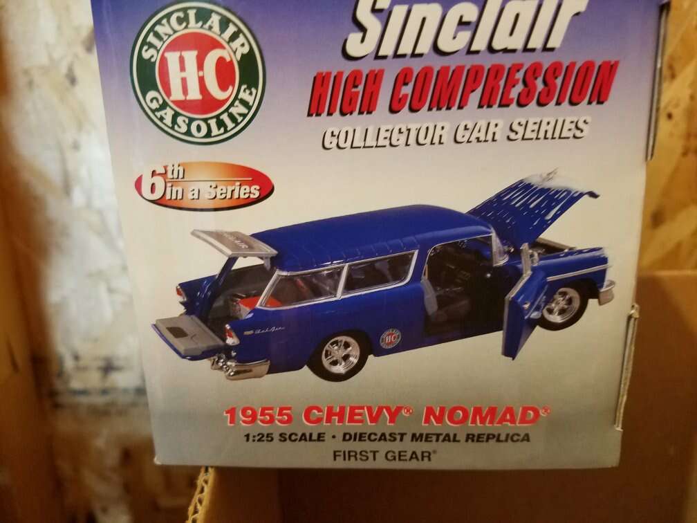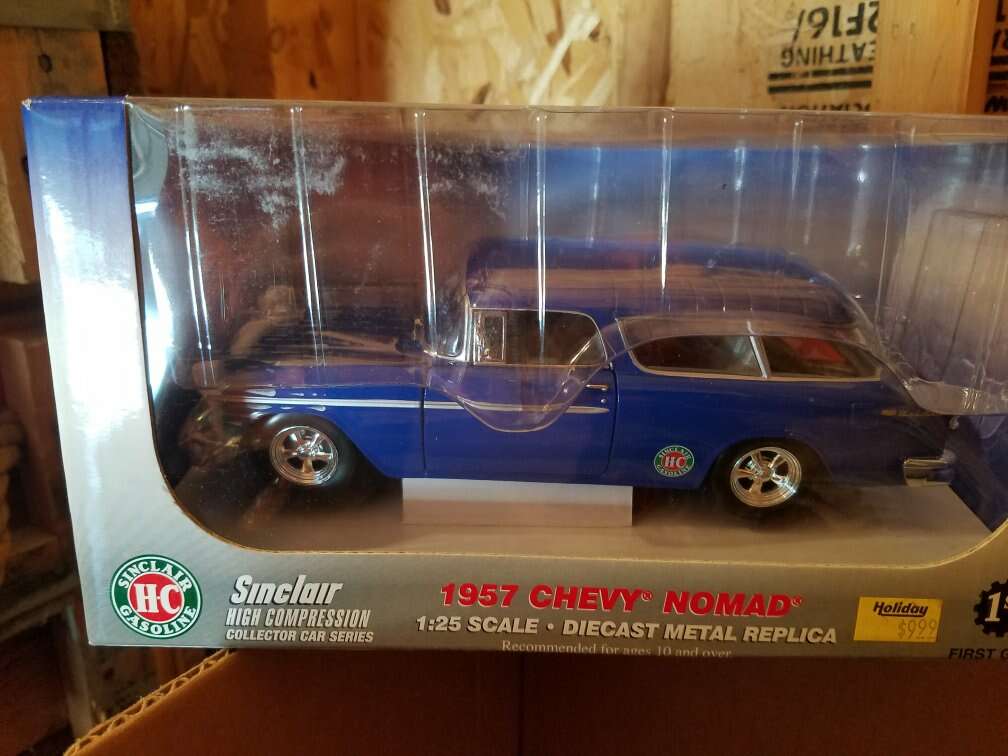 Mismarked Sinclair "55" chevy Nomad die cast car. Box is marked 55 and 57 both. Never opened