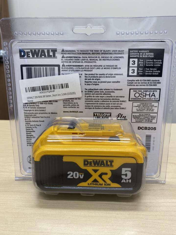 No memory and virtually no self-discharge Lightweight design for portability 3-LED fuel gauge system for immediate charge status Model#: DCB205 Sku#: 1002406145 Internet#: 205227130 Keep your DEWALT 20-Volt tools running longer with the 20-Volt MAX Lithium-Ion Premium Battery Pack. This battery is compatible with the complete line of DEWALT 20-Volt MAX tools. This battery is backed by a DEWALT 90-day money-back guarantee and 3-year free service contract for added peace of mind. 5.0 Ah capacity 3-LED fuel gauge system for immediate feedback on the state of charge No memory and virtually no self-discharge for maximum productivity and less downtime Lightweight and portable at only 1.4 lbs. Part of the DEWALT 20-Volt Max system Extended capacity for longer run time Genuine DEWALT accessory