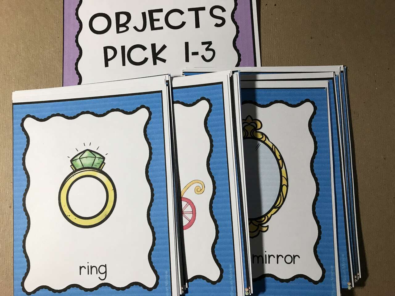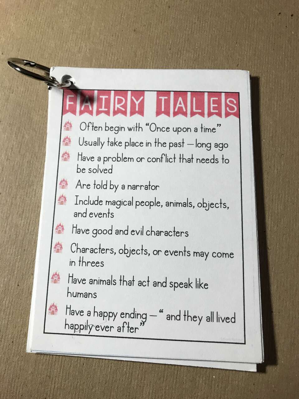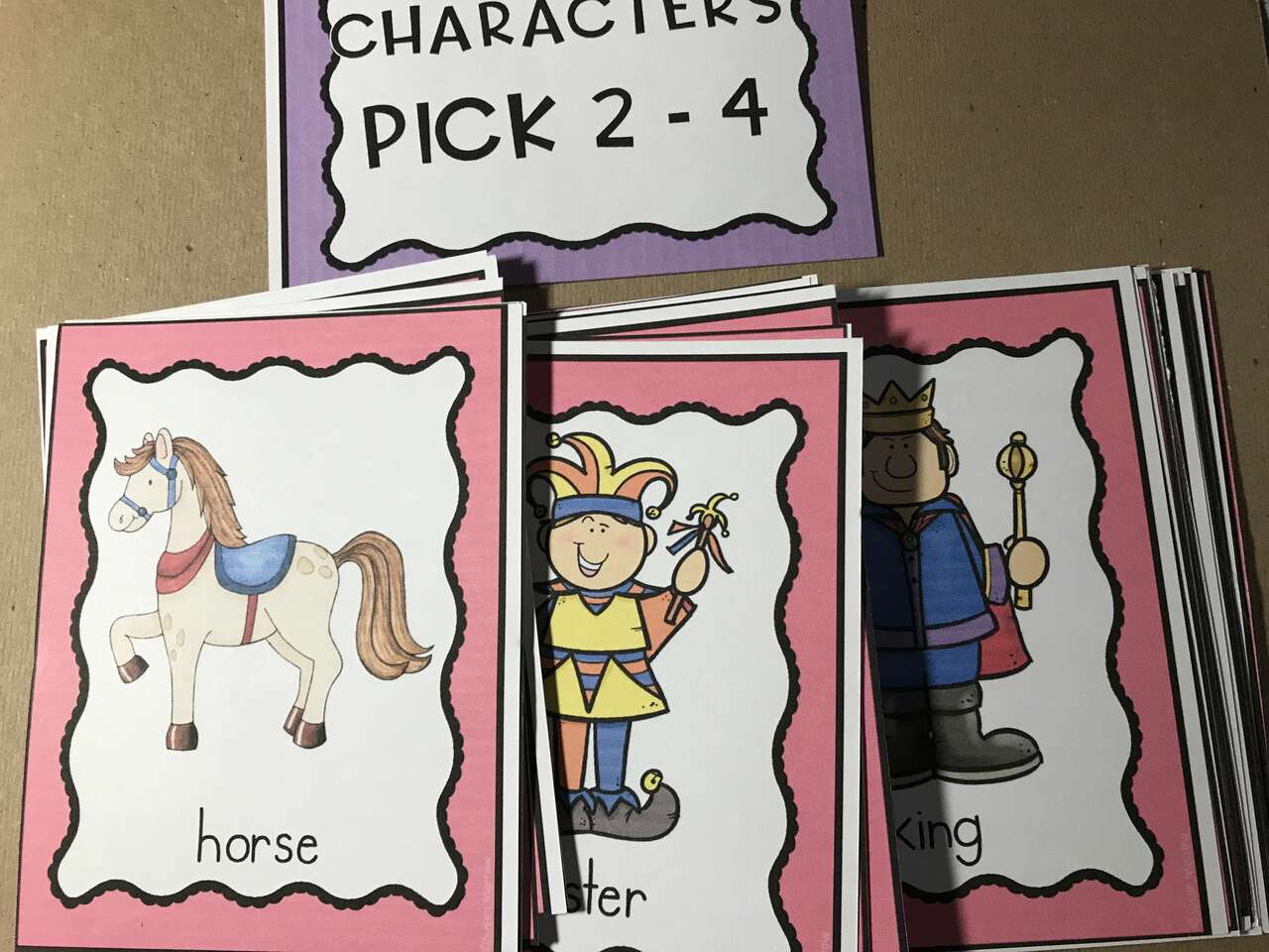 Fairy Tales Cards for helping Children Makeup Fairy Tale Stories. There are several colored cards in this stack for helping children make up stories. Cards pictured are just a small sample of cards included.