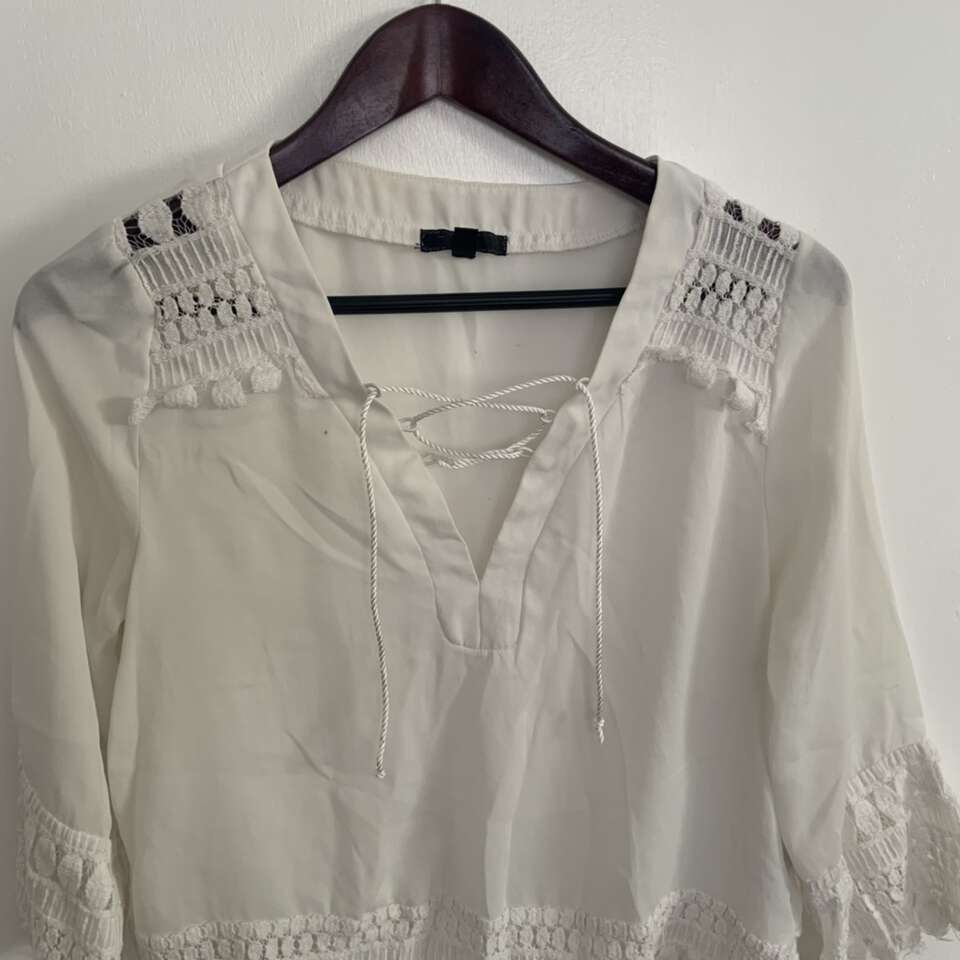 Beautiful White Lace Blouse Size M It does have a couple spots and an area where it was mended (see photos)