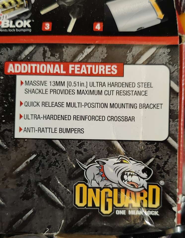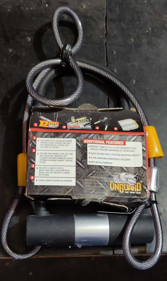 VenmoBrand New OnGuard OG Series 5523 U-lock Standard Double Team Scooter Bicycle Bike Lock in original packaging. One really tough lock for just about anything you need to keep. Commonly referred to as a U-Lock With Cable Extension for wrapping awkward items. Have not been opened so the keys are secure. I bought it new and just haven't needed it. Can ship for $20, is very heavy. I have two identical, price is for each.