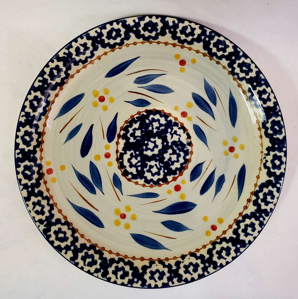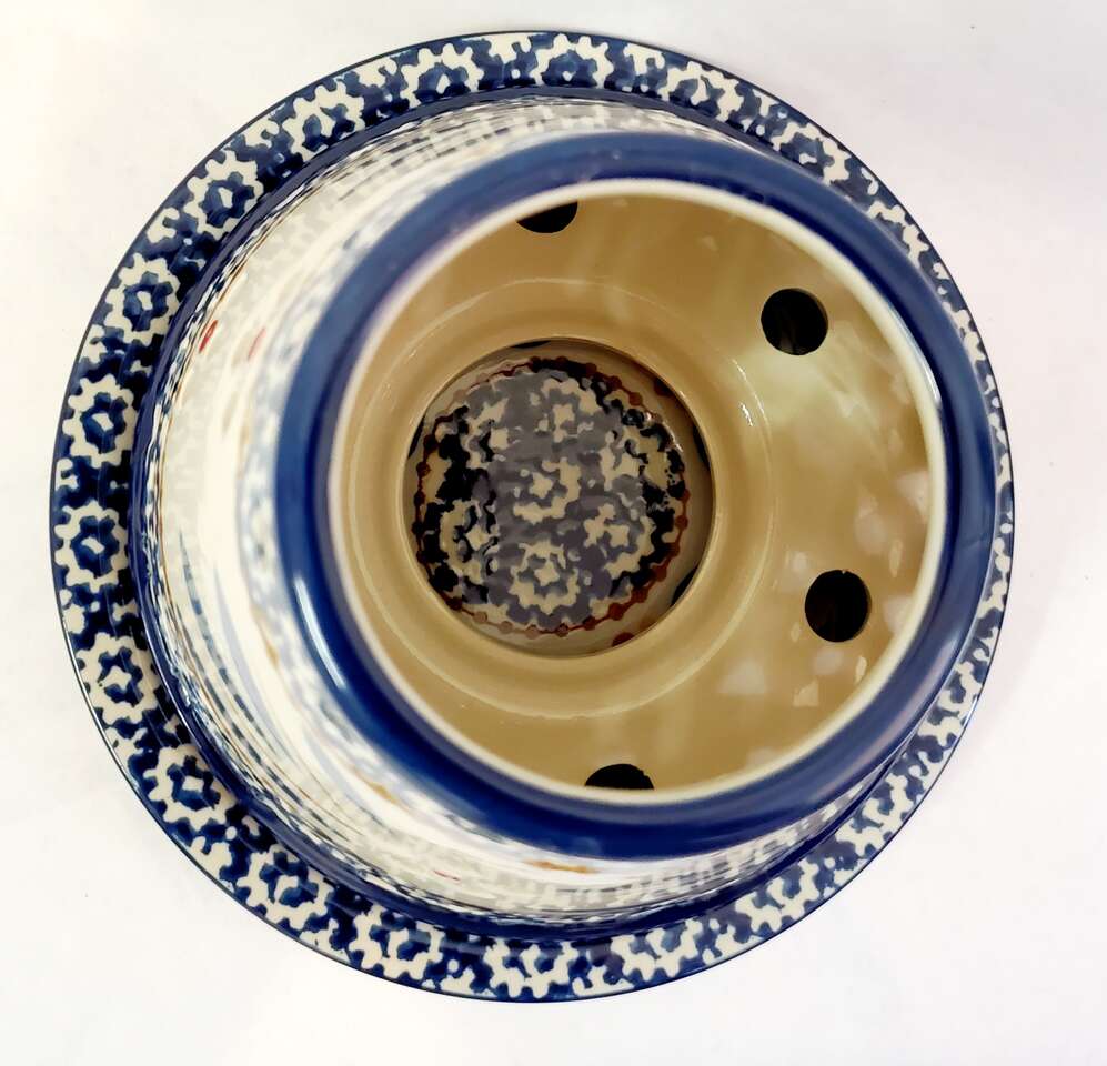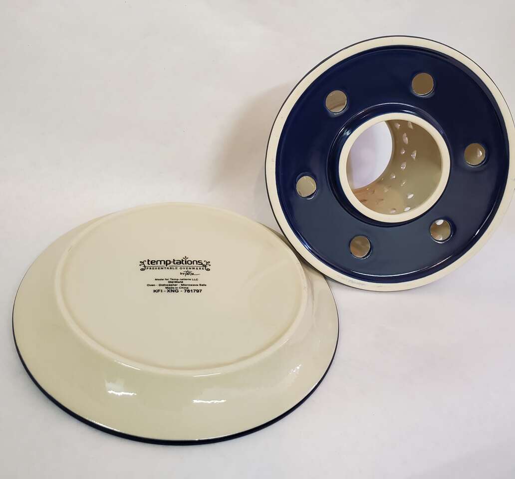 Temp-Tations Blue Old World Candle Shade with Under Plate. Plate 6.25" width, Shade 4" Tall,