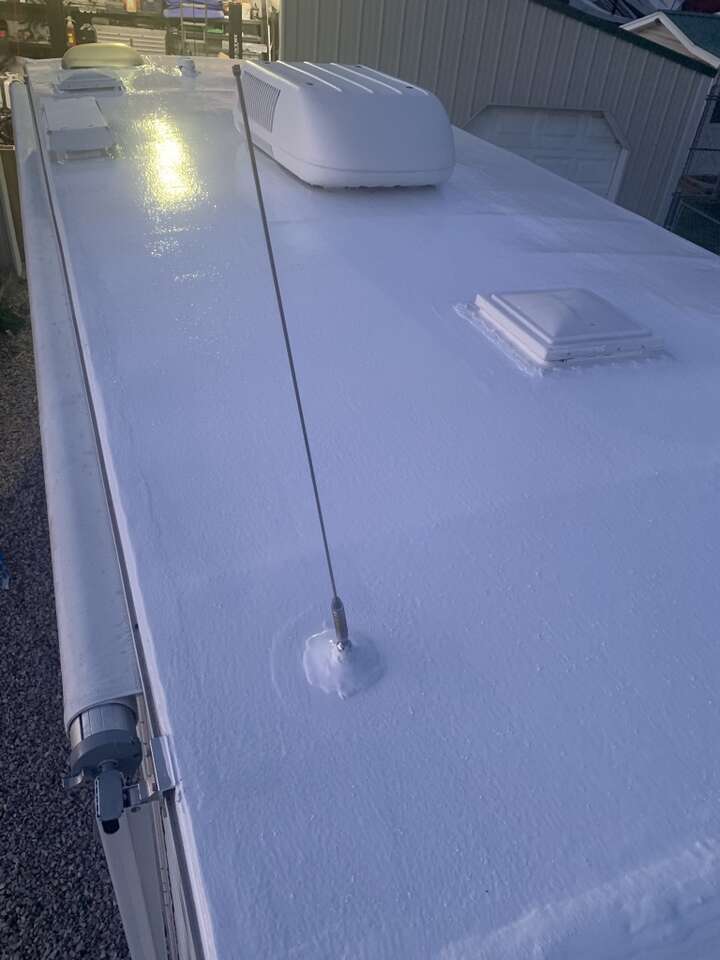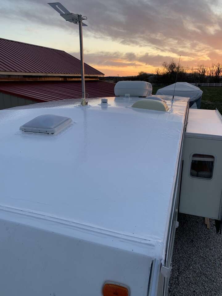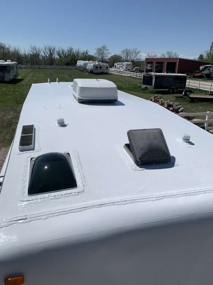 If your RV roof surface has been compromised, damaged, or is just worn out, we are your guys! The number 1 cause of RV damage is water infiltration from a leaking roof! We take great pride in our work and can protect your trailers roof by applying a layer of 100% silicone, impervious to water penetration! Not only will you protect your roof, but this product reflects the UV rays and significantly reduces the heat penetration on the roof surface of your RV! This product is the very best money can buy and carries an amazing lifetime warranty.