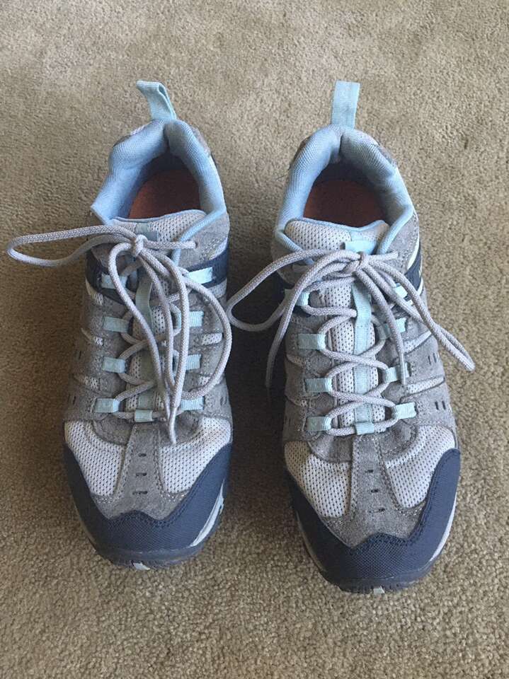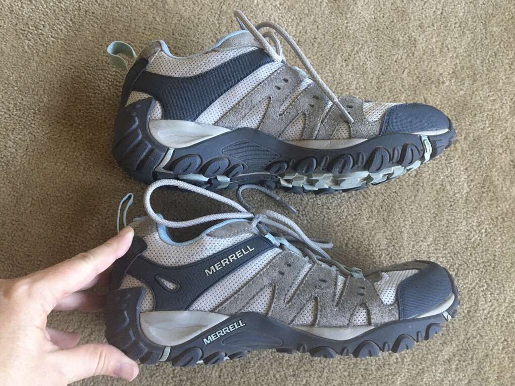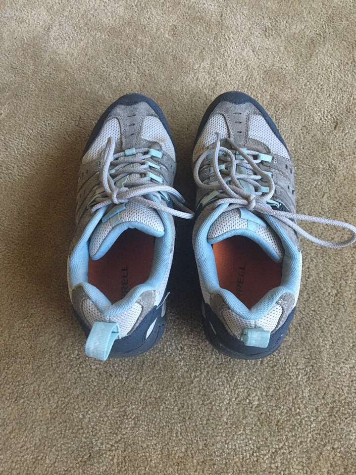 Gray and light blue Merrell hiking shoes, women’s size 10 (EU 41). Leather and mesh. Very good condition, sturdy, no wear on soles. Text if interested. Cash or Venmo.