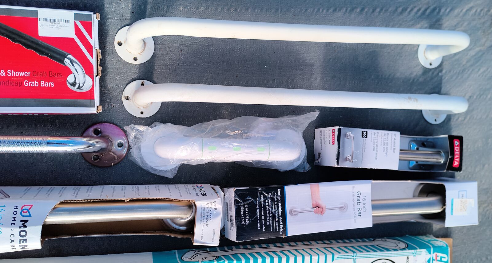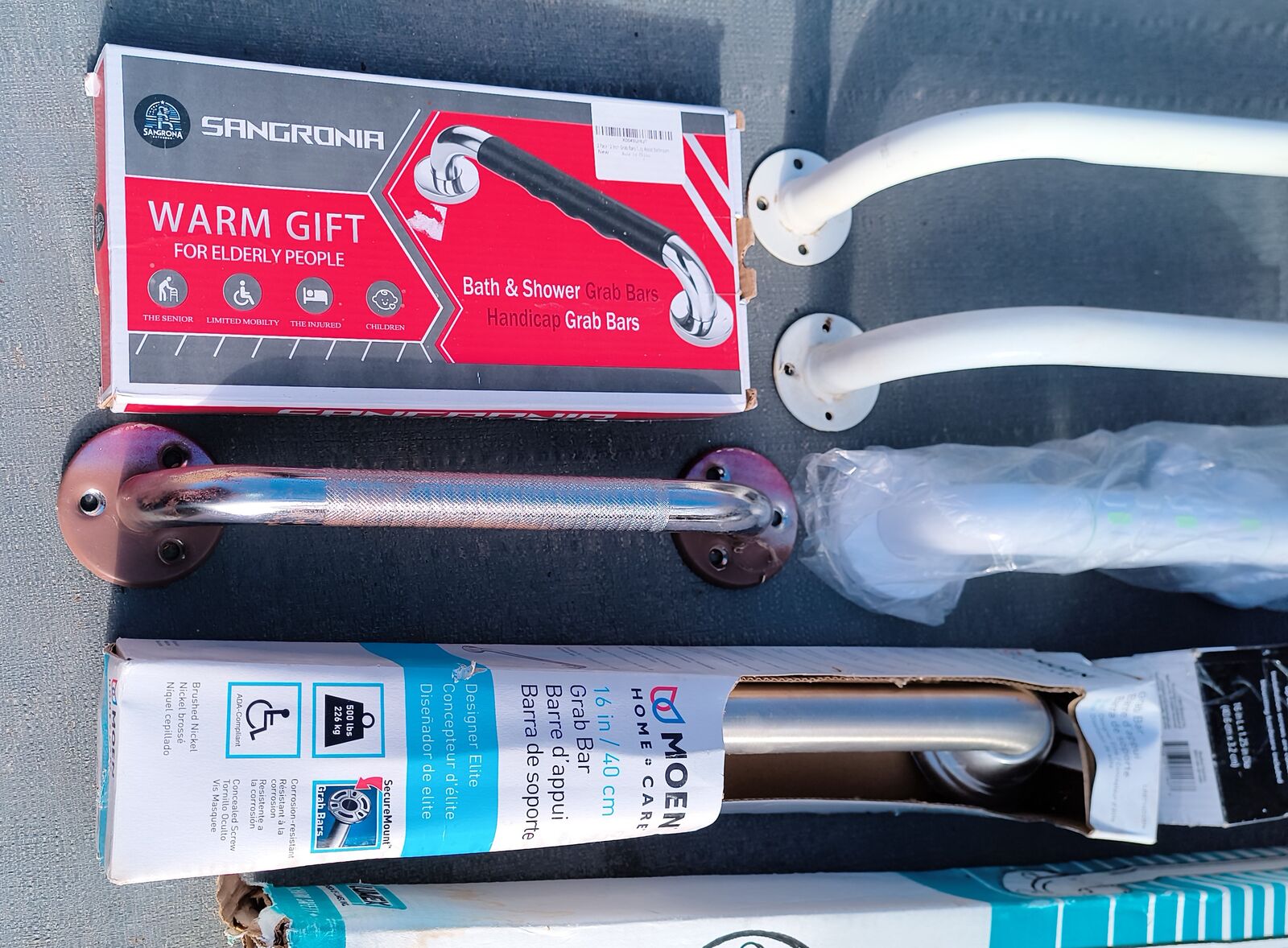 ZelleNOTE: Pictures updated 12/02 - Bars shown vary from 45 inches to 16 inches (45, 32, 24 16) plus several hand grab bars. All subject to prior sale. 20 in pictures.