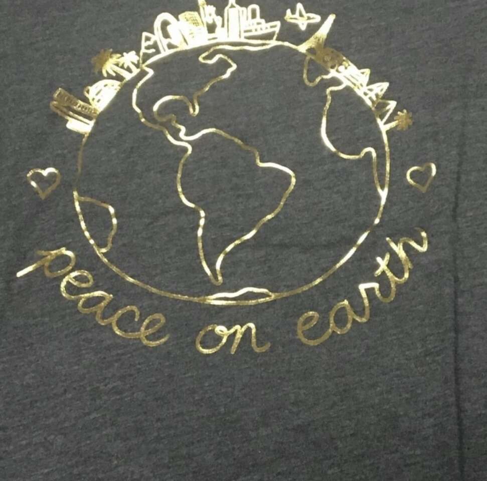 NWT- Girls Graphic Tee Old Navy Long Sleeve Size: Large (10-12) Color: Grey with gold metallic graphic Graphic: World with a town printed on the top and the words- Peace On Earth printed on the bottom of the image. Crew Neck