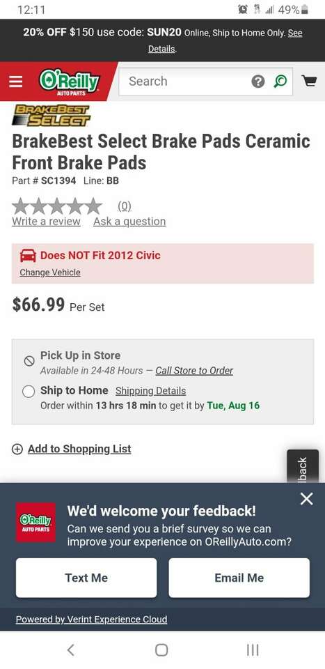 This is for a set of front brakes for a 2012 Honda Hybrid-L but it does fit other year models....see pictures. This is brand new as I bought these brakes but I sold the car before I could switch them out. These brakes are from O'Reilly. Save $25!!!