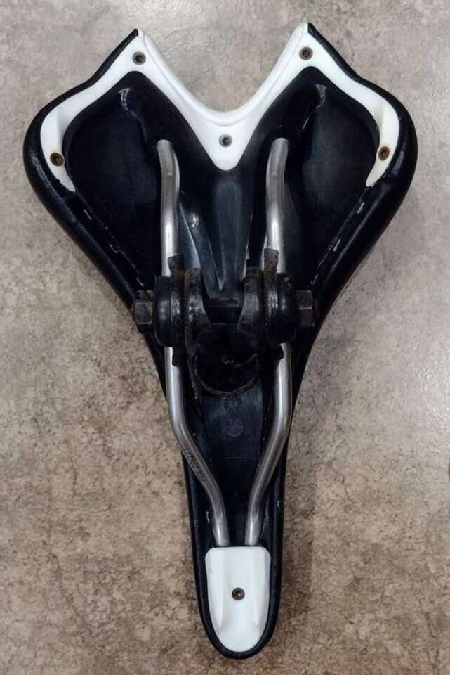 FOR SALE: A like new Bontrager R 1 bicycle seat saddle 146 fiber einforced black white.