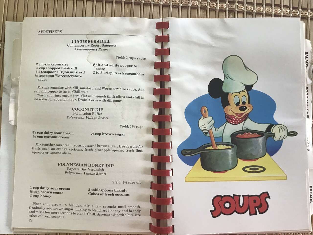 Venmo1987 "Cooking with Mickey Around Our World" spiral bound cookbook. unfortunately it does have some water damage, but pages are not stuck and are all legible, just a bit wavy and stained, so only asking $20. Please see more by seller for many collectibles and vintage items from family home and our own. Thanks.