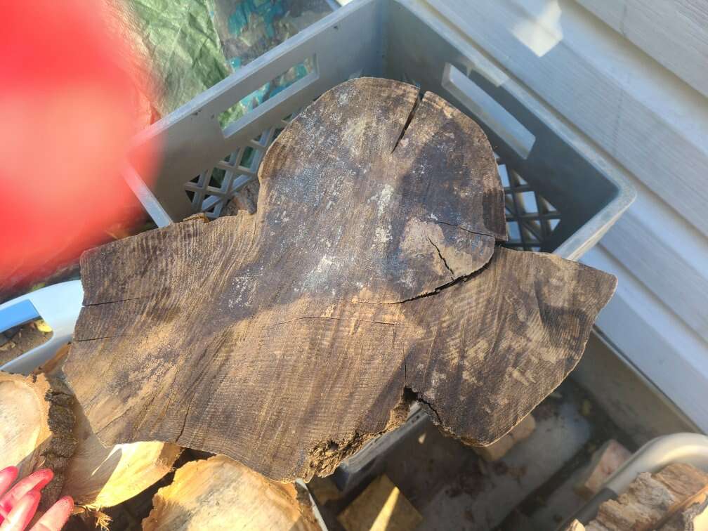 $5.00 cash Wood Semi Round Center Piece Not sure type of wood 14.5x11x2.7