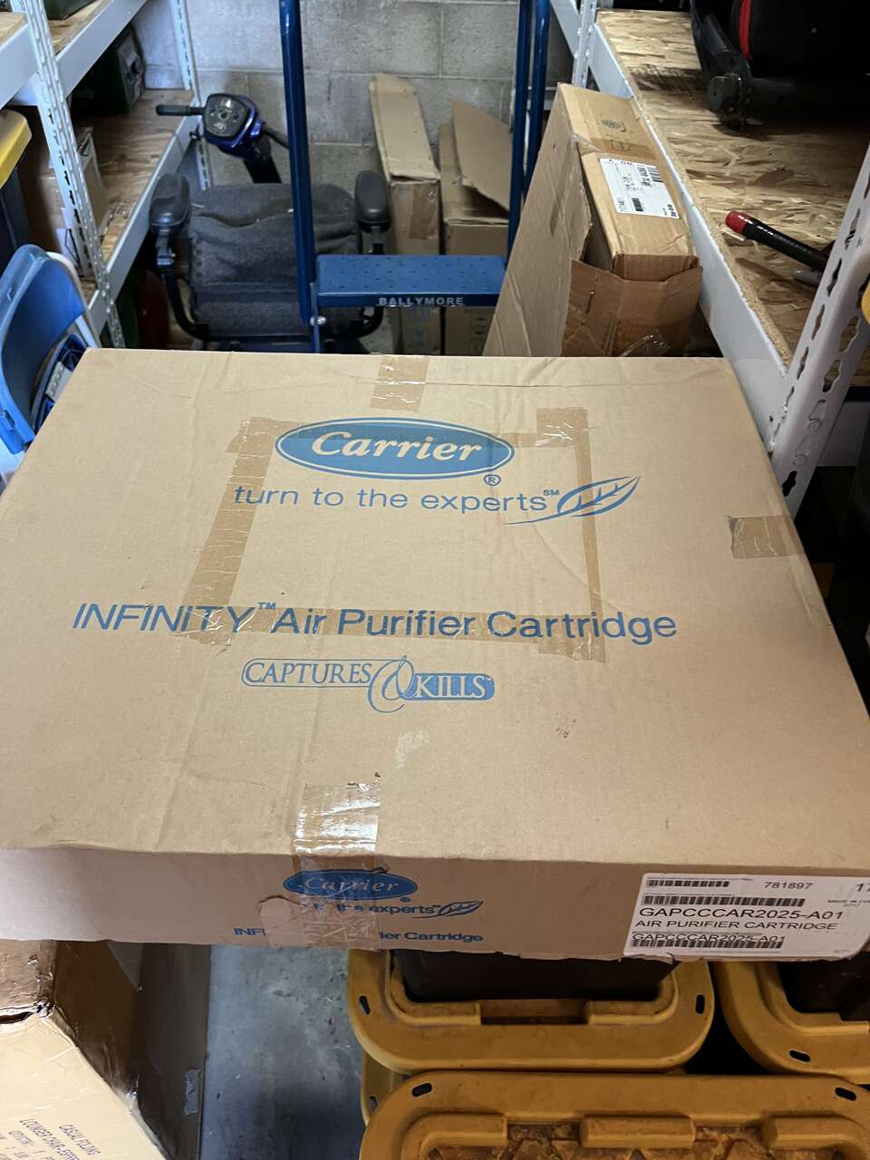 ApplePayNEW IN BOX CARRIER INFINITY AIR PURIFIER CARTRIDGE MANUFACTURE PART NUMBER: 781897 ITEM NUMBER: GAPCCCAR2025 ITEM DIMENSION: 20” X 25”