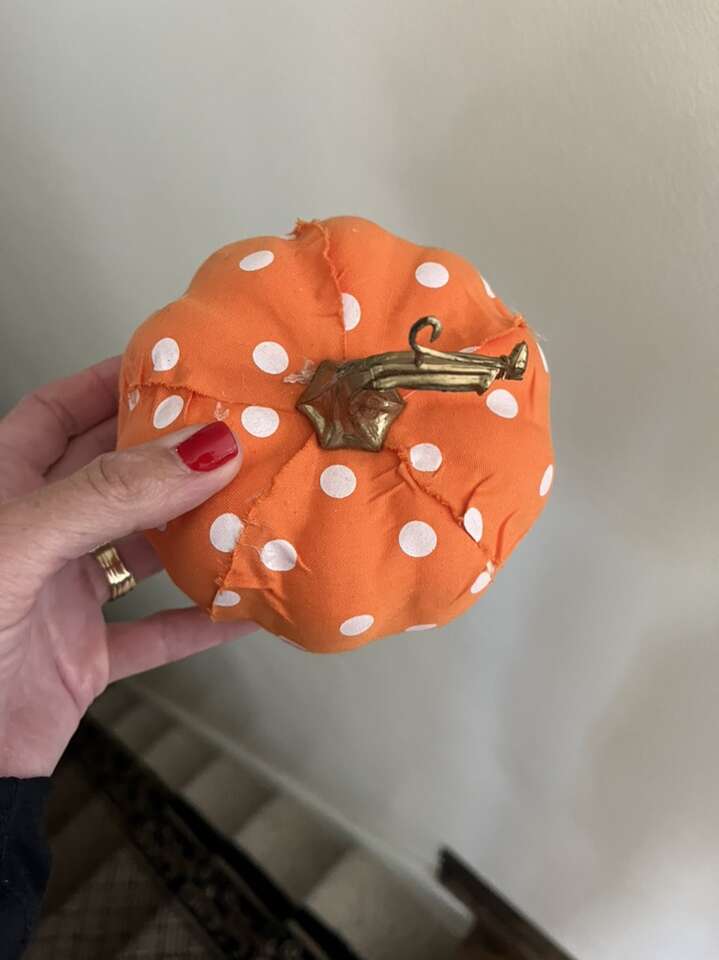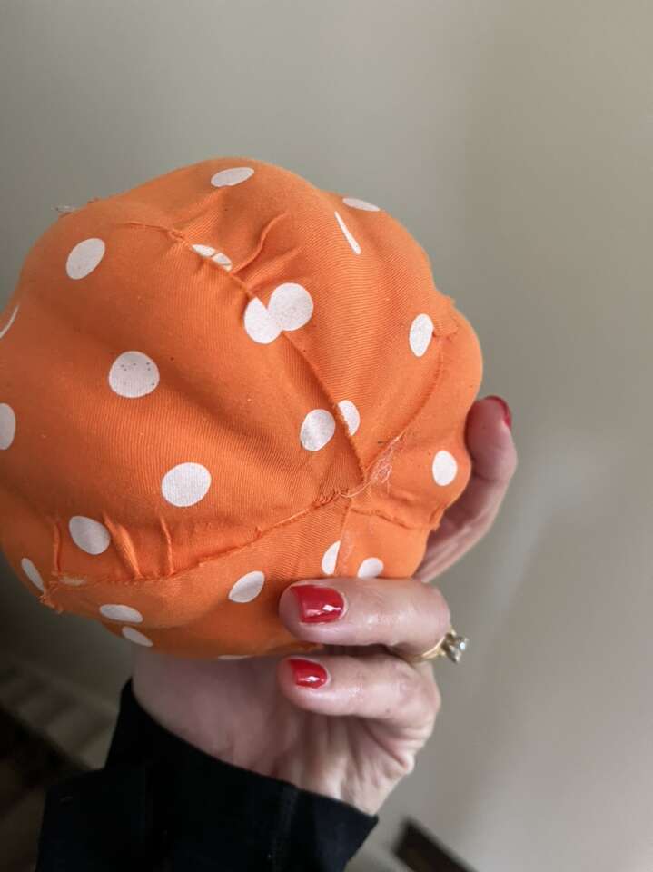 Polka dot orange/white pumpkin 5 1/2 inches tall