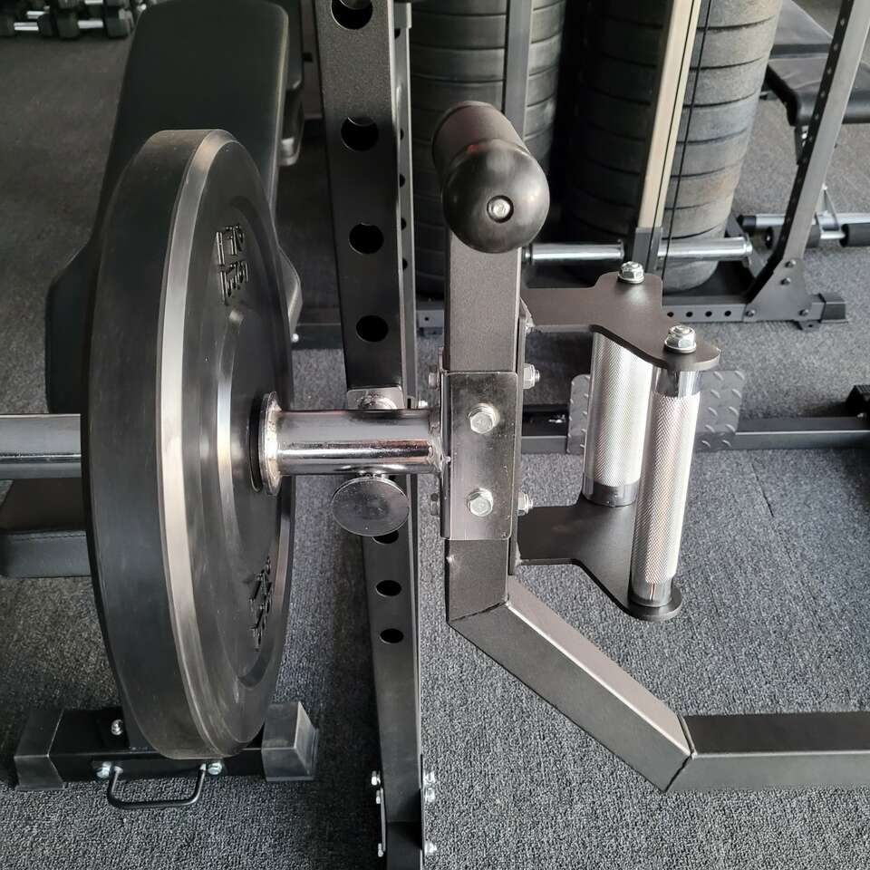 Equally popular is the built in floor jack; just tip the bar on its side and you can load all your plates with ease.