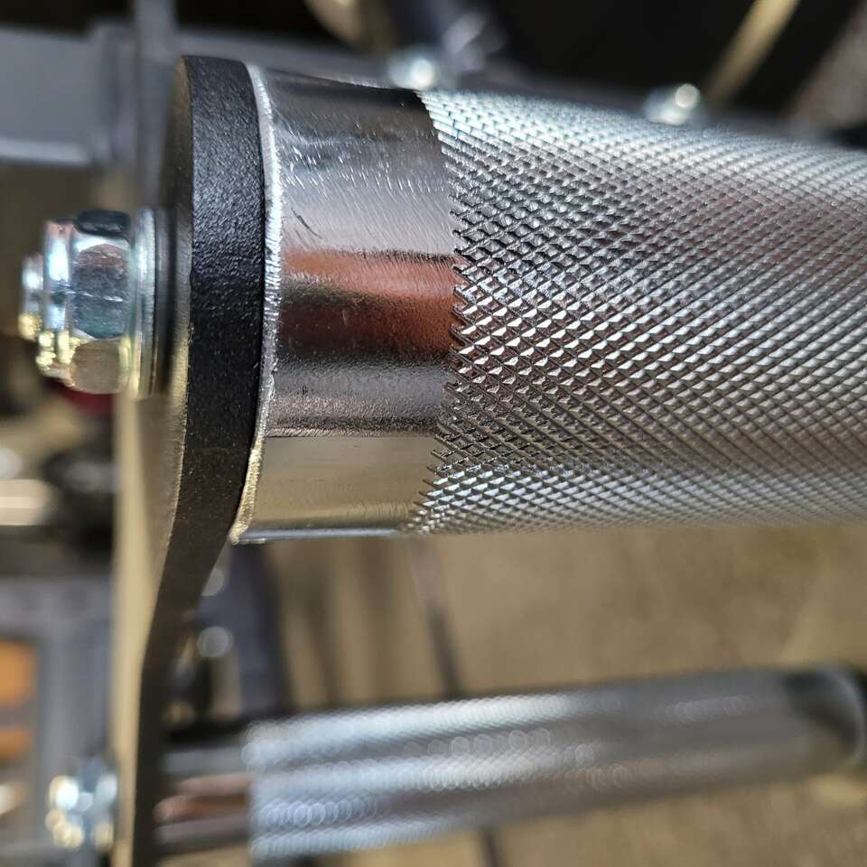 Our open hex/trap bar has many features; my favorite is the dual rotating handles which allow you to grab and go without having to release your grip to adjust your hand position. You've got a standard diameter handle and a fat grip on the other side.