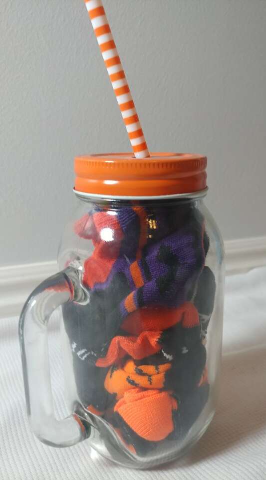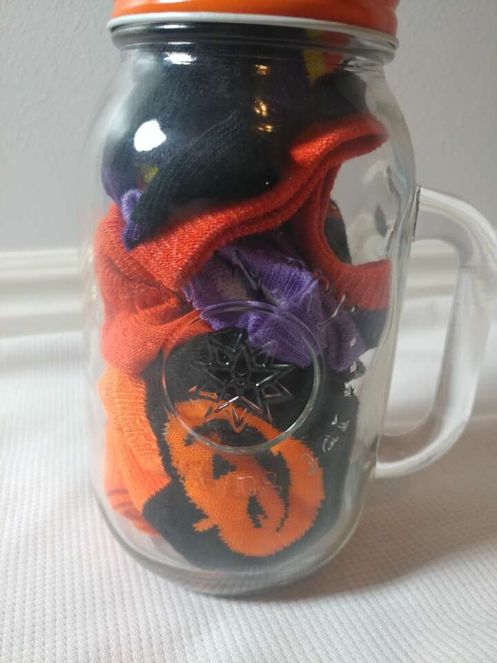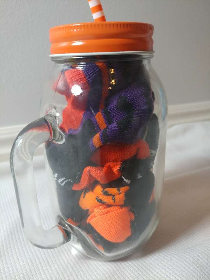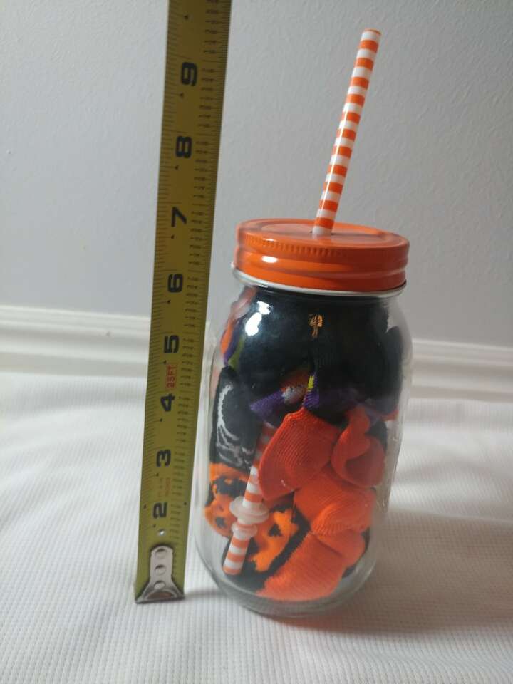 BRAND NEW! Glass mug is almost 10 inches tall with the straw. Halloween socks fits girls/boys with shoe sizes for ages 9-13 depending on child's shoe size. One pair of socks is knee high. Two pairs are ankle cut socks.