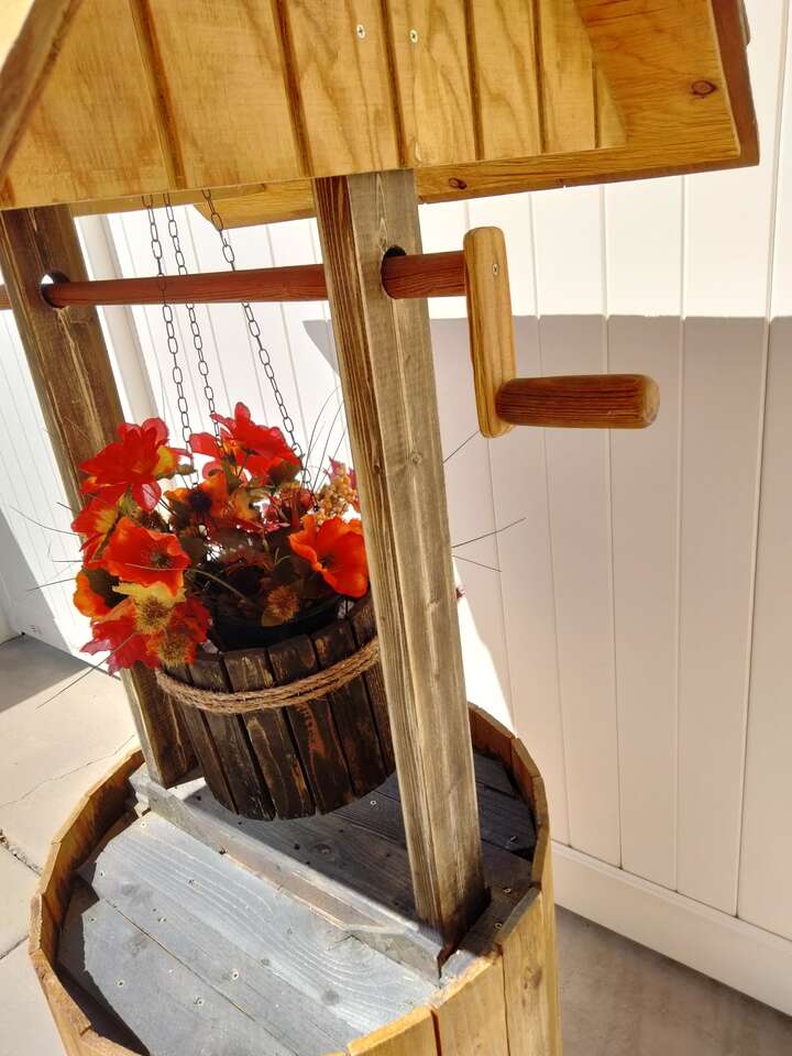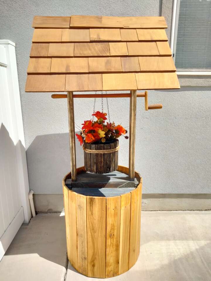 VenmoLooking for something unique for your beautiful yard, patio, deck or interior. Check out this one of a kind custom made quality built wishing well. It stands 6'1" tall x 33" wide, made mostly of cedar with real skake shingles. Sealed for moisture protection. Make nice bird feeders.