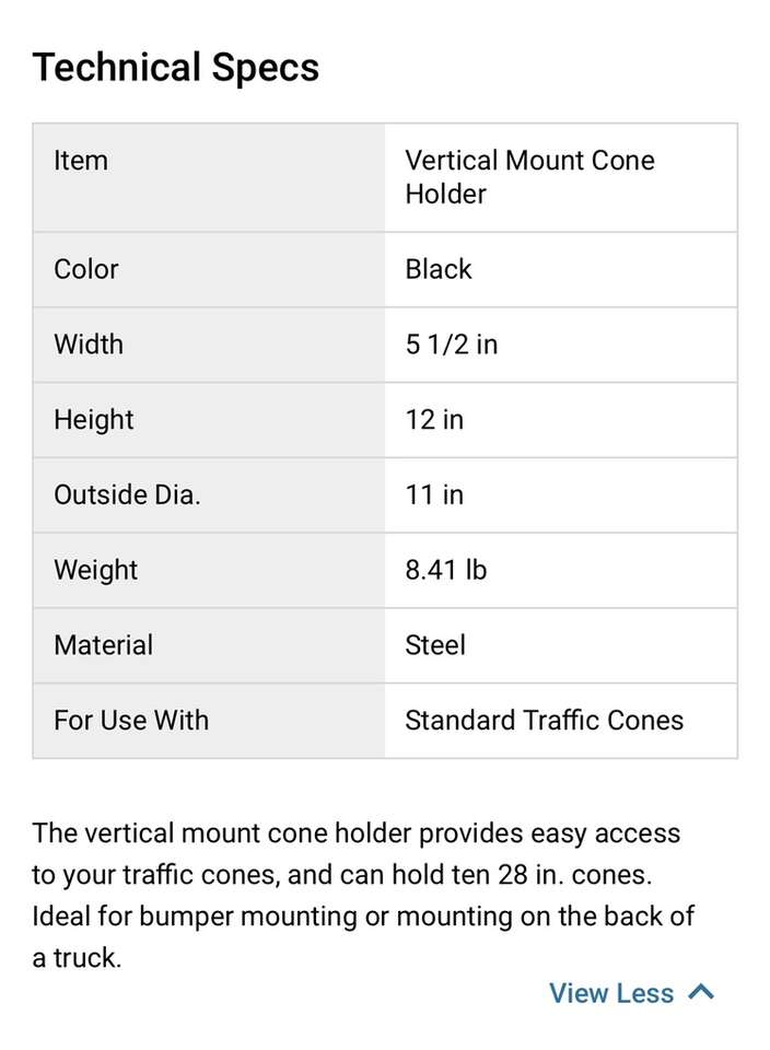 Description- Steel vertical mounted traffic cone holder. See photos for more product information and specifications.