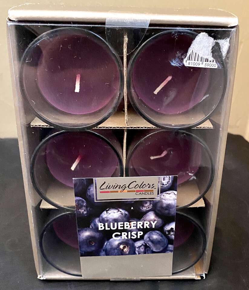 NEW - Rare Carved Wood BURNES OF BOSTON FRAME + 6 Blueberry Crisp Votive Candles & Holders - C PIX. Compareables sell for $43.