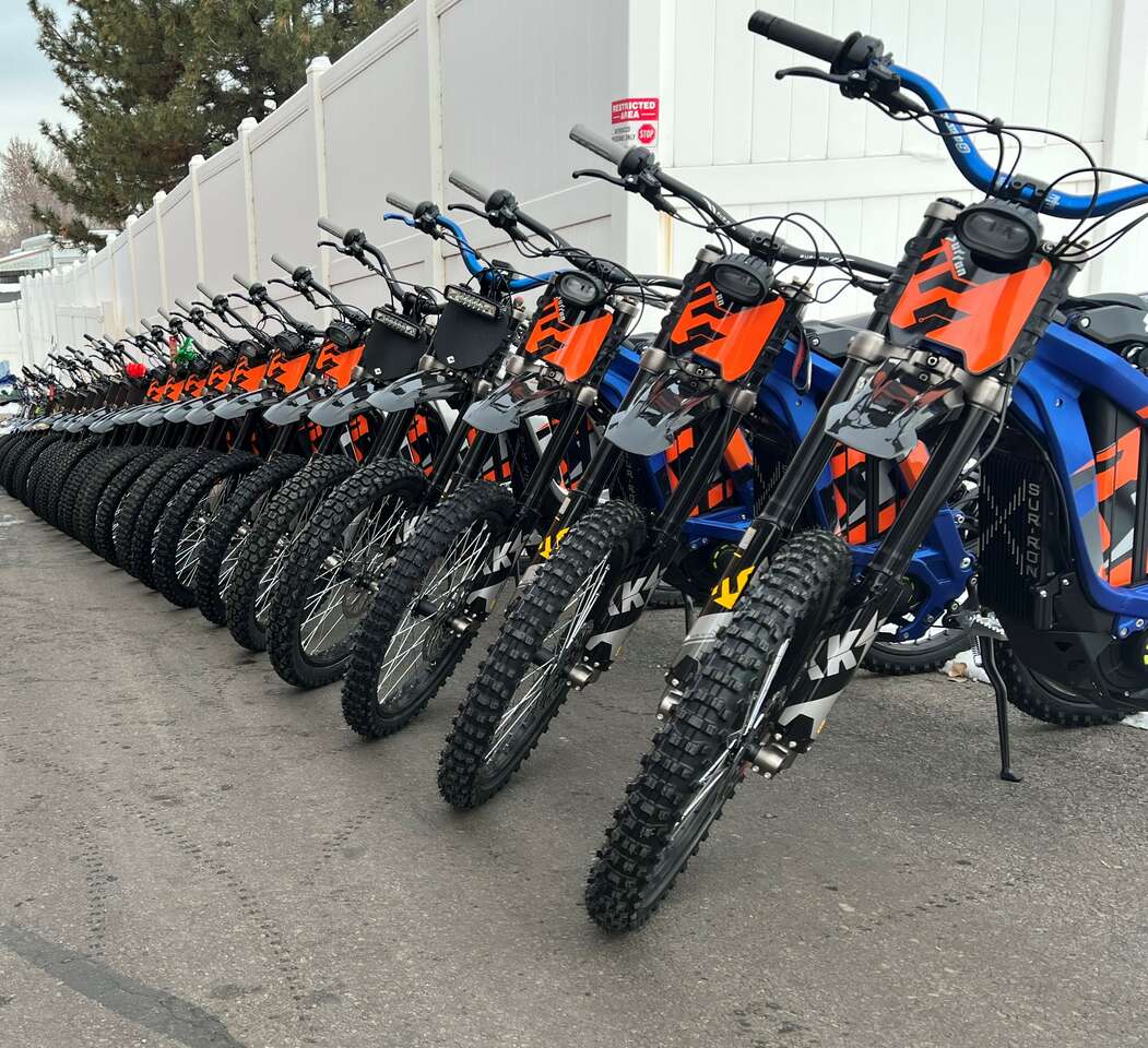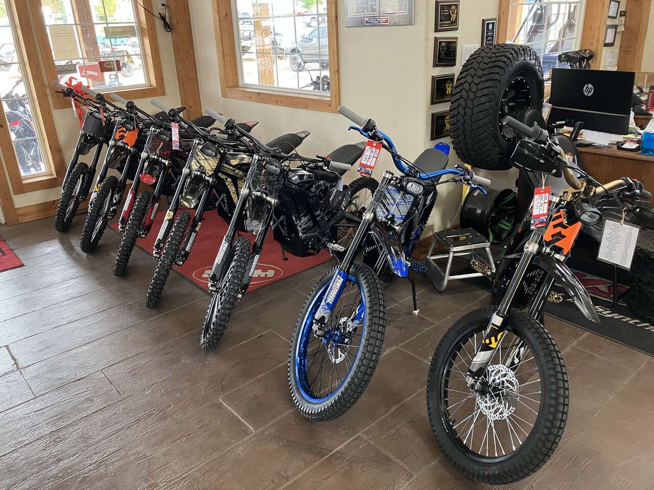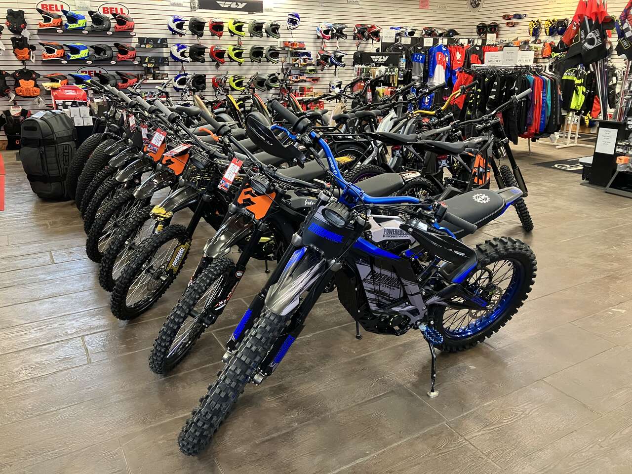 Currently out of Surron and Talaria but have many parts in stock and many other brands of E-Motorcycles starting at $3,399 in mid-sized and $2,799 for youth e-moto. We are a Sur-ron dealer. We also stock thousands of parts in an aray of colors. We have fully built bikes, or we can build them to be what you want with your colors. Swing by and check them out, we also have a demo bike you can take for a ride.