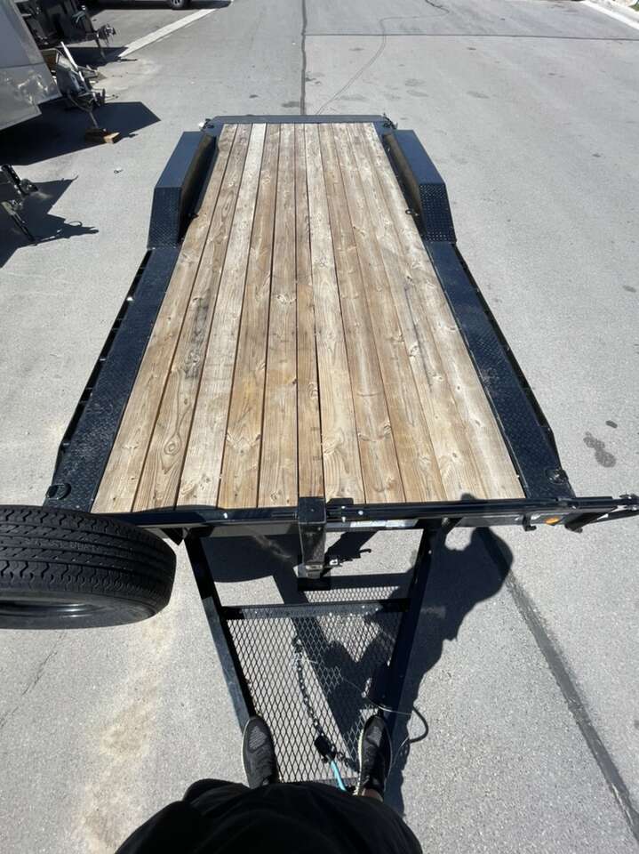 For rent is my new PJ B6 super heavy duty extra wide car and truck hauler. It’s 20’ long and 8’ 6” wide with drive over fenders. 83” between the fenders.