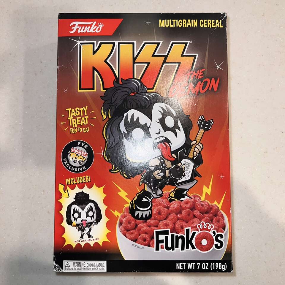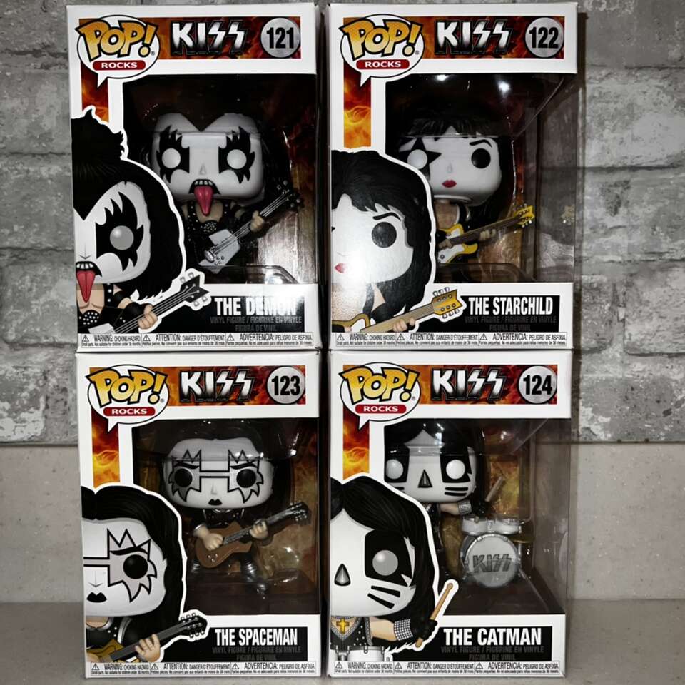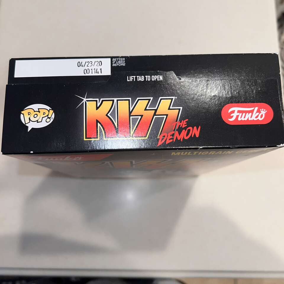 VenmoGreat gift for the KISS collector! Full set of KISS Funko Pop Rocks in great condition. Never removed from the boxes. Funko KISS The Demon Multigrain Cereal Box - unopened. Some blemishes, check pics. Selling off our Funko collection.