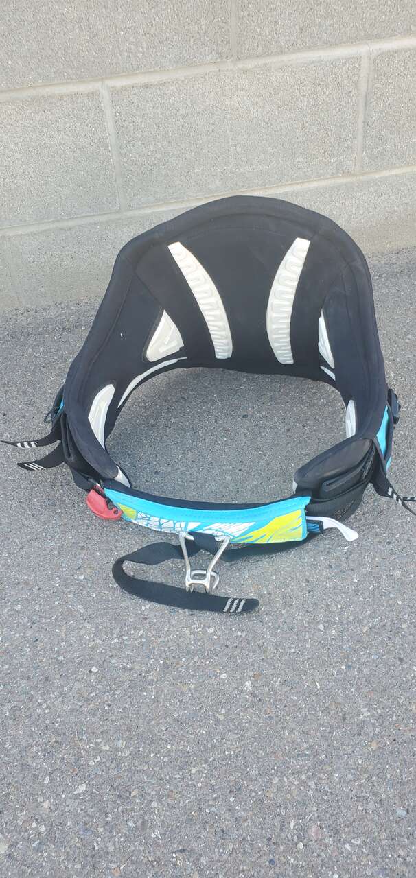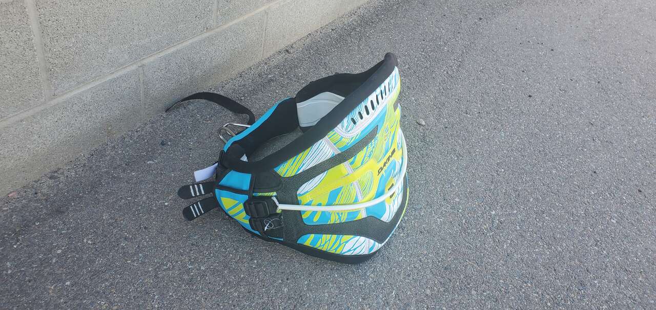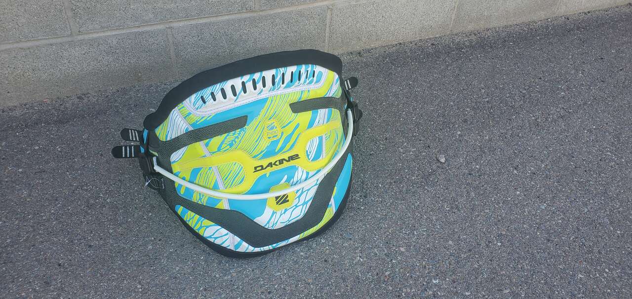 LIKE NEW Dakine Pyro Kiteboarding waist harness. Adjustable from medium to XL online info: The Dakine Pyro kiteboarding waist harness builds on Dakine’s long heritage to offer a fuller profile waist harness. The Pyro features an Adaptive Fit Composite back panel with Texon counter/stiffener, which offers the ultimate responsiveness and an improved custom fit with every wearing. Fit is further enhanced with featherweight ES foam molded interior, a pre-curved P.E.B. inner support structure and memory foam pressure point relief zones to keep you out on the water longer. The Pyro features the easy-connect/disconnect push button Hammerhead spreader bar and freedom shape spreader bar pad. Features TEXT IS BEST, calls ok