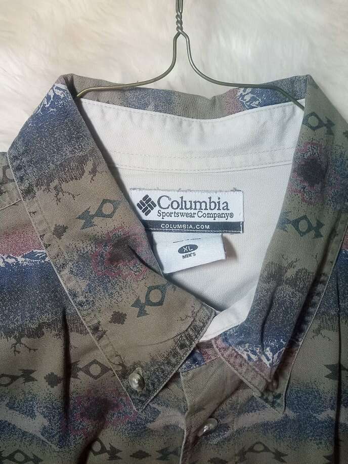 This Men's Columbia Extra Large long sleeve heavyweight cotton shirt has a front pocket and button-down collars. No rips, tears, stains, or missing buttons. Smoke-free home. It has just come back from the cleaners from being washed, lightly starched, and pressed. Ready to wear. Cash or Venmo only.