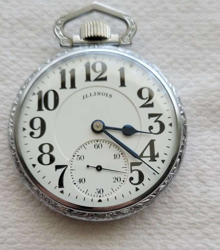 I’m selling a nice vintage 16 size, 21 jewel Illinois A. LINCOLN pocket watch. The watch has been cleaned and timed. The watch has a nice Illinois double sunk dial with a small imperfection at 7 o’clock. The watch is housed in a chromium base metal case. Based on the serial number, this watch was made circa 1917………….
