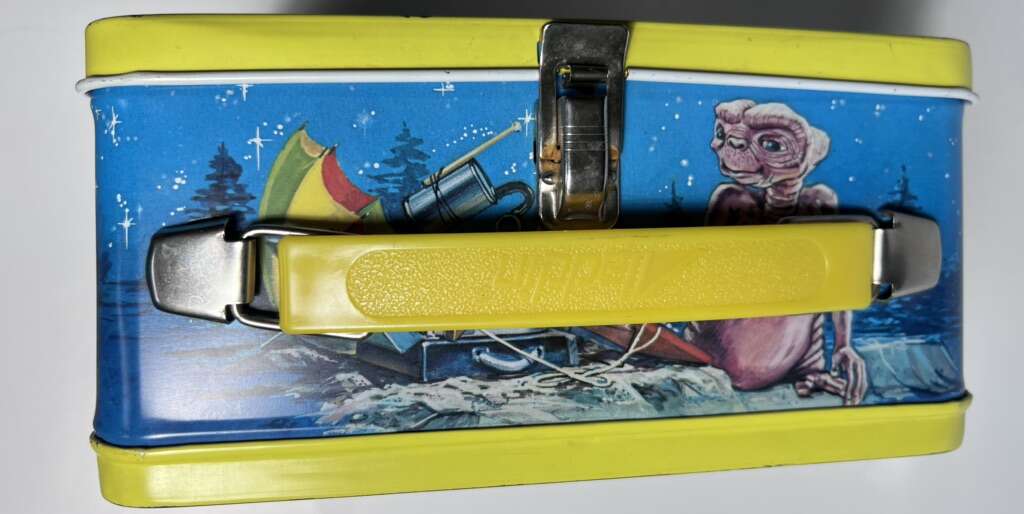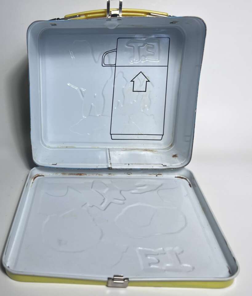Sugarhouse Good condition for its age. The graphics and colors are still nice and vibrant. There is normal wear/paint loss. Also a little bit of rust inside. I do not have the thermos. Lock latches nicely and handle is secure. Cash only Text is best.