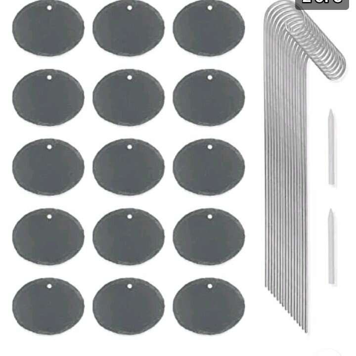 Garden Marker Signs 15 pk Included: 2 marking crayons, stainless hangers, 15 oval stone markers New in box Have 7 sets!