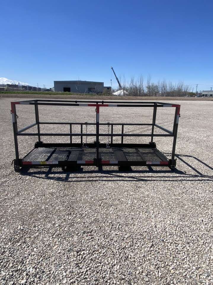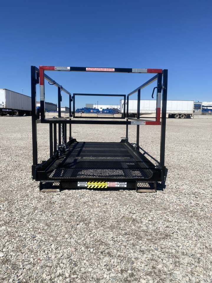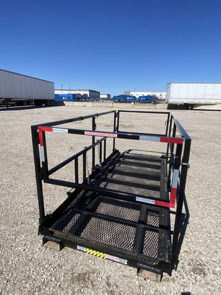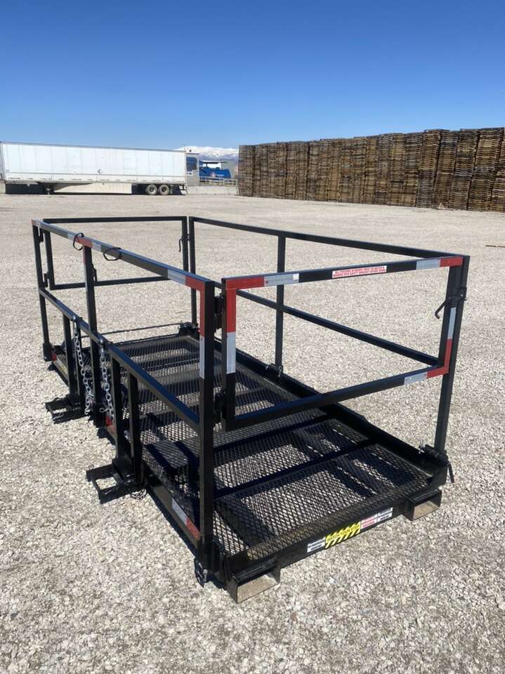 These are heavy duty solid legit man baskets with fold down rails, safety lanyard hooks, gates on each end. Universal Fork Pockets, fits on any forklift Meets OSHA ANSI Standards Please call with any questions!
