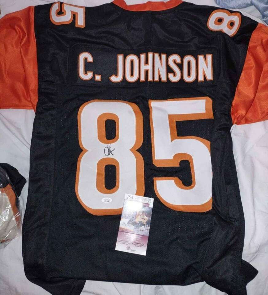CHAD JOHNSON (OCHOCINCO) AUTOGRAPHED SIGNED PRO STYLE CUSTOM XL JERSEY WITH JSA WITNESSED COA