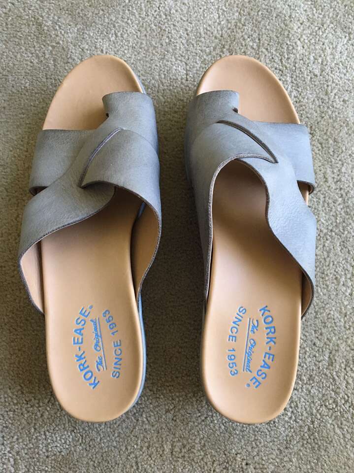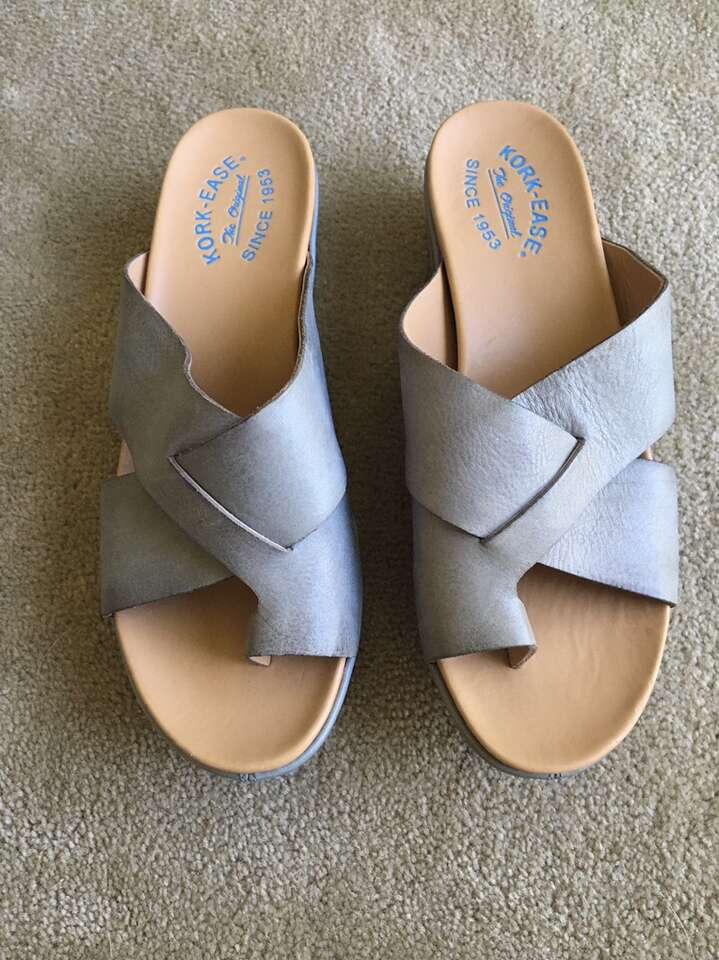 Kork-Ease gray slip-on platform sandals, women’s size 8, EU 39. Genuine leather. 2” platform. Like new condition. Text only. Cash or Venmo.