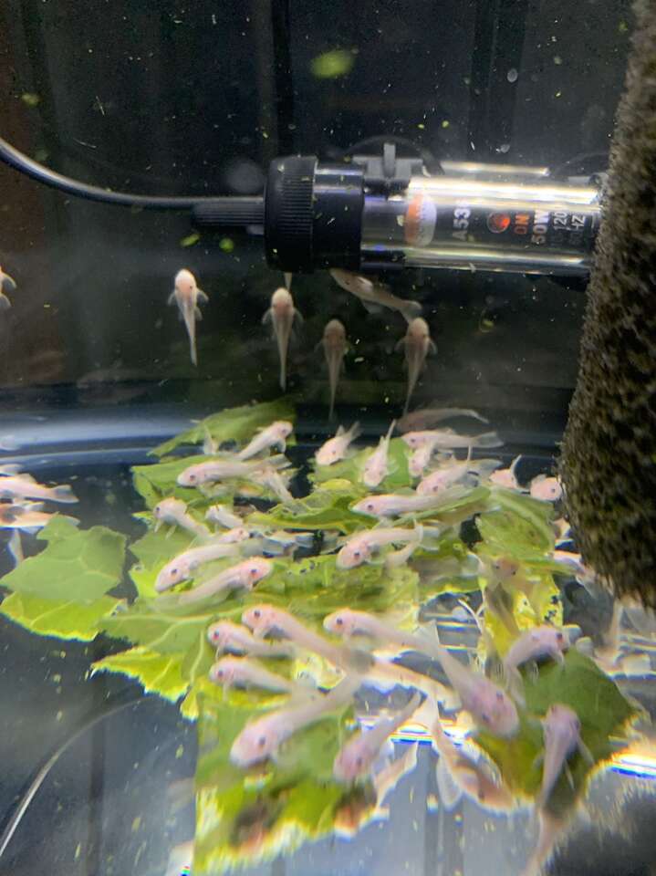 Snow White Bristlenose Plecos 1”-1.5” 100 to sell it’s a leucistic variant of L144 they have blue eyes $10 each.