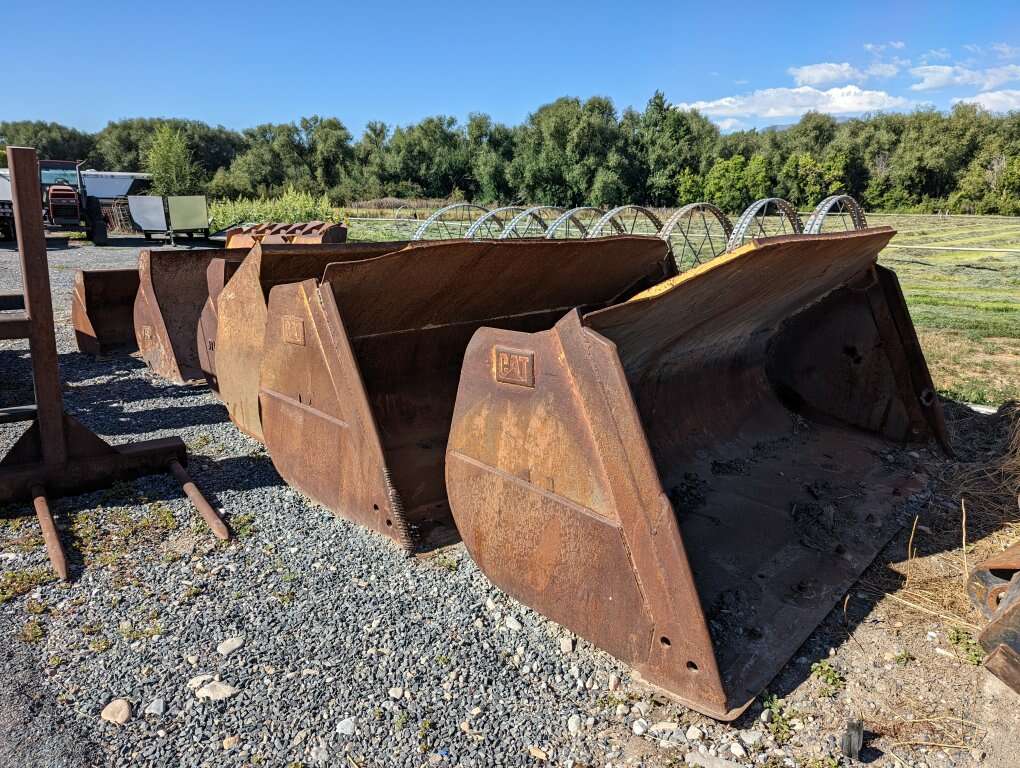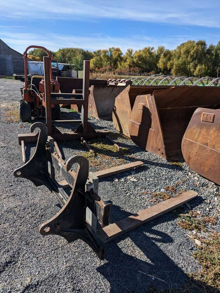 A few cat loader buckets and forks some pin on some cat quick attach both around 4 to 5 yard for cat 938 up to cat 966 and some older cat 950