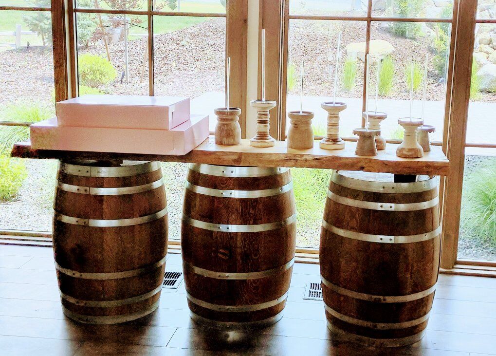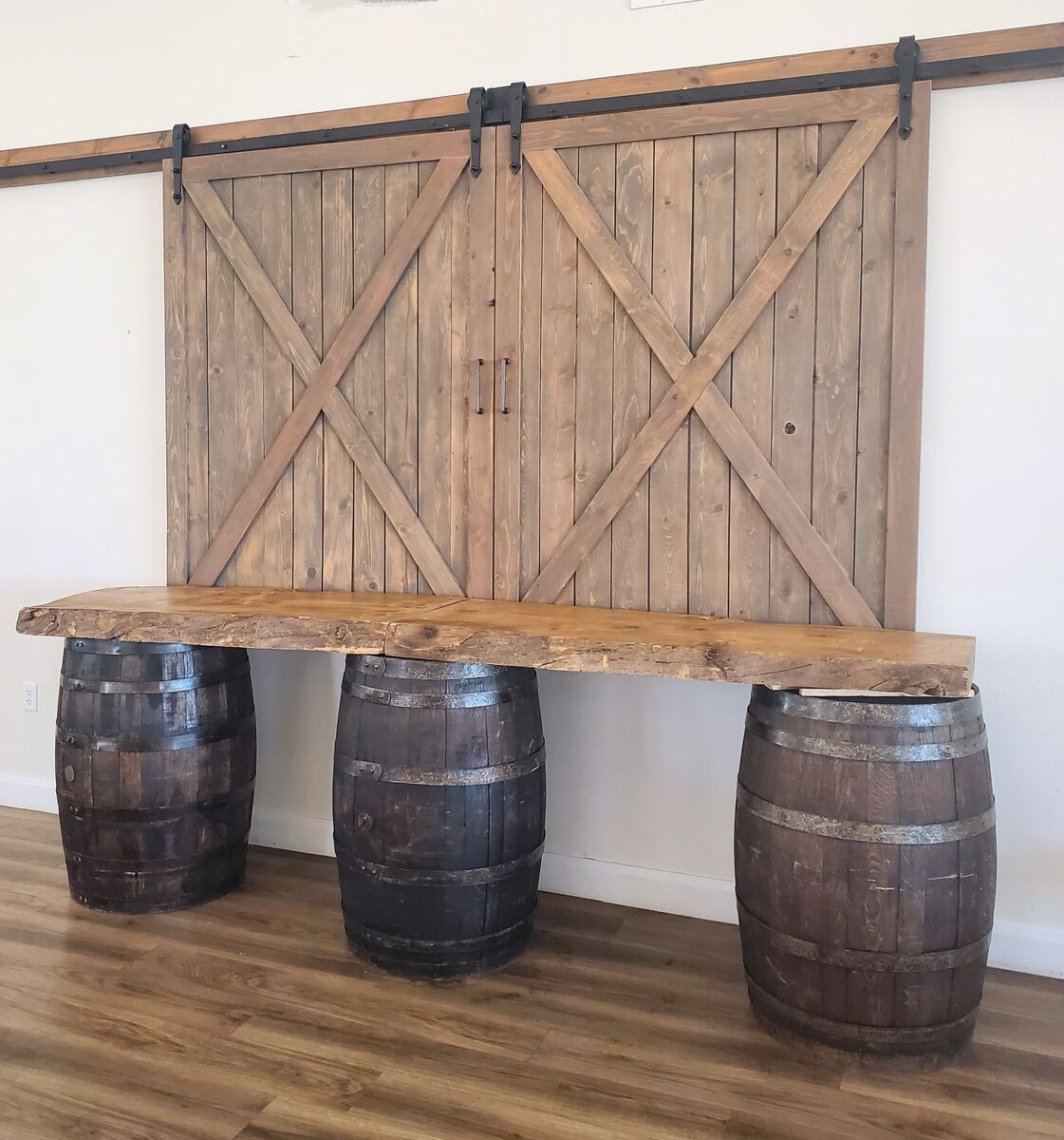 At Arbor Meadows we have a wide variety of Whiskey and Wine barrels, and natural edged bars & tabletops available for purchase or rent. Many full, half, and quarter sized barrels, in various colors to choose from.