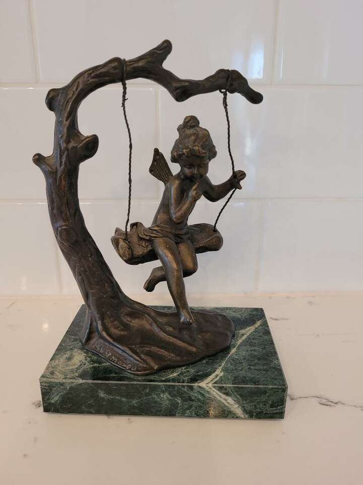 August Moreau Bronze Woodland Sprite On Swing Sculpture Collectable Andrea By Sadek Excellent Condition- No damage 6.5 in tall (including base) X 4.5 in wide X 3 in deep Cash or Venmo only please