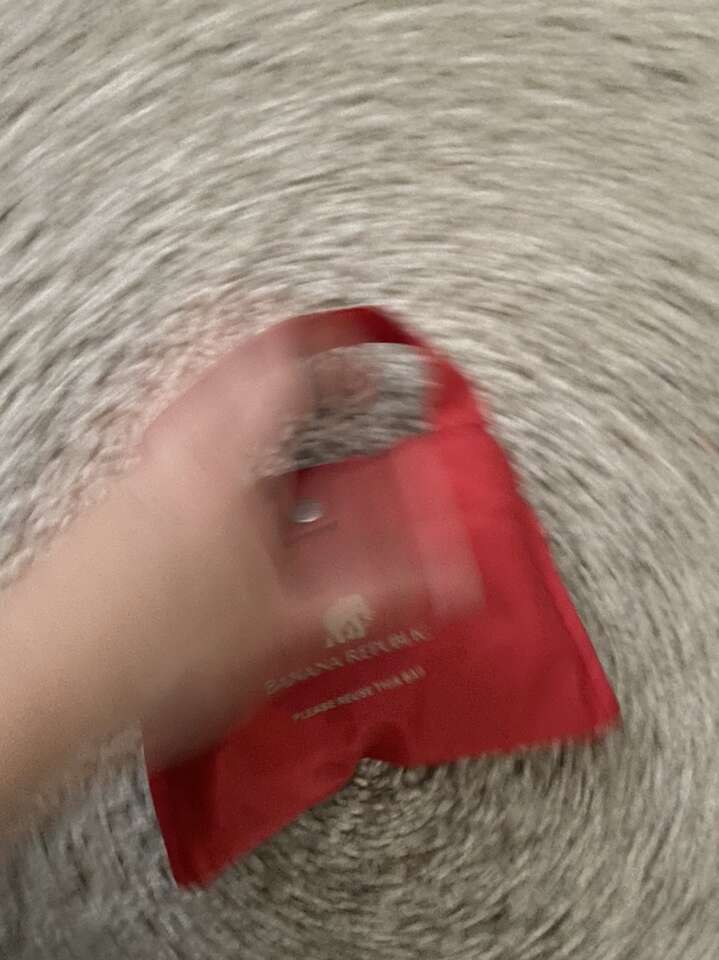 Cute orange/bright red reusable tote by BR. Easily folds into mini bag for convenient storage/taking to a store.