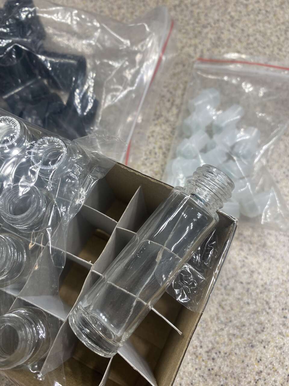 They are new with cap, dropper. I bought for oil but no longer uses.