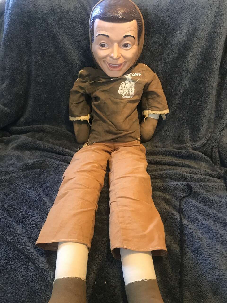 Halloween prop DAVY CROCKETT WALKING DOLL SHOE STRAP LARGE 40” plush 1960's