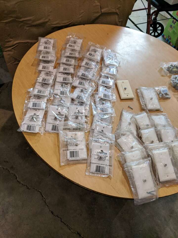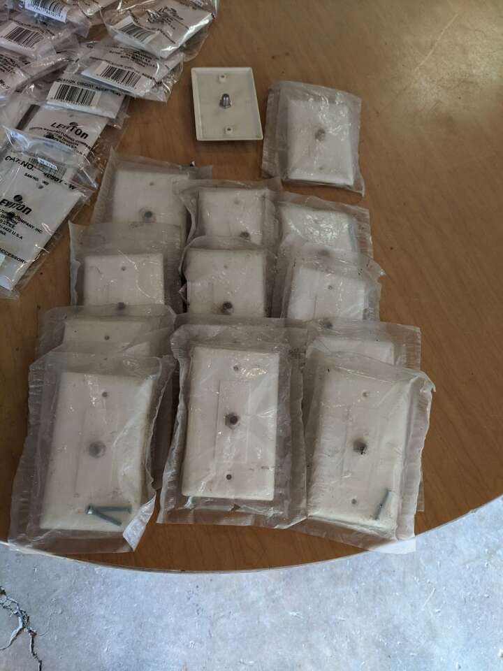 I have 31 white,13 off white,and 1beige wall plates for cable tv etc. $1.25 each. 4 splitters for 4 lines. @$2.00 ea. and 1 for 2 lines. @$1.00ea. OBO.