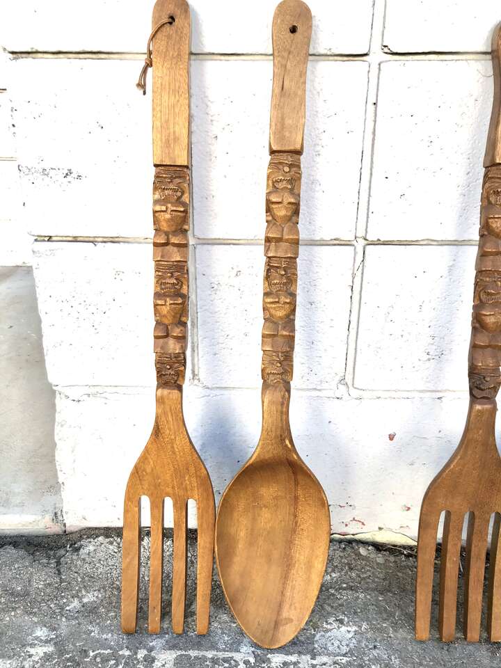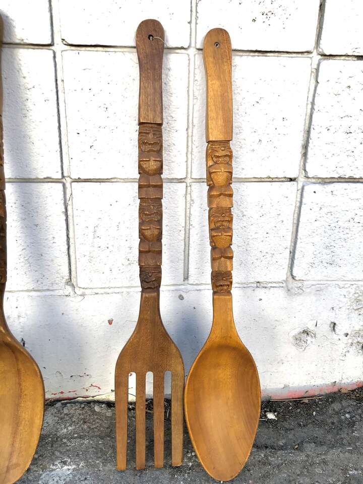 I have some fantastic mid century wooden spoons- the kind that hangnonnthr wall and add a sweet vintage vibe. Most are 28" tall ($30 per set)