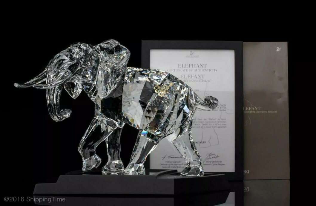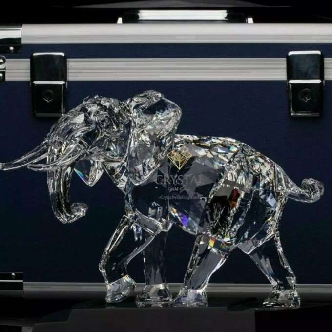 The Elephant is the fifth Numbered Limited Edition produced by Swarovski and was limited to 10,000 pieces worldwide. The Elephant comes with a framed certificate of authenticity which bears the signatures of Adi Stocker and Helmut Swarovski and the number of the piece. The piece is housed in a secure blue case which also contains a cleaning cloth, a pair of Swarovski gloves and a small book. The case is lockable using a key. This magnificent piece was only available in 2006 and was distributed by a lottery system. In which SCS members interested in purchasing the piece expressed an interest, and a secret draw was held to select the “winners” who were then invited to purchase the piece.
