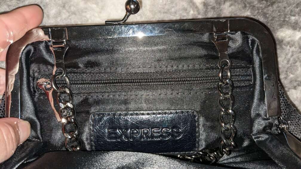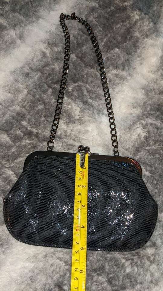 Express Evening Bag Clutch Micro Sequined Snap Closure Tuckable Strap Small NEW.