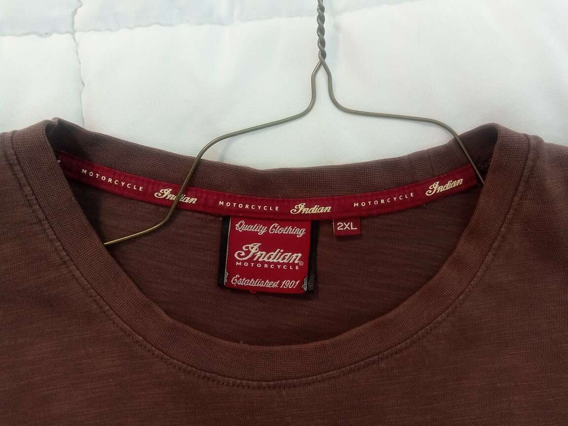 Price Reduced Again This is a genuine brand Indian motorcycle t-shirt in size 2XL. It is worn, but does not show any stains. There is one one small hole in the front, see picture. The back is plain, with no printing. Washed and ready to wear. From a smoke-free home. Cash or Venmo only.