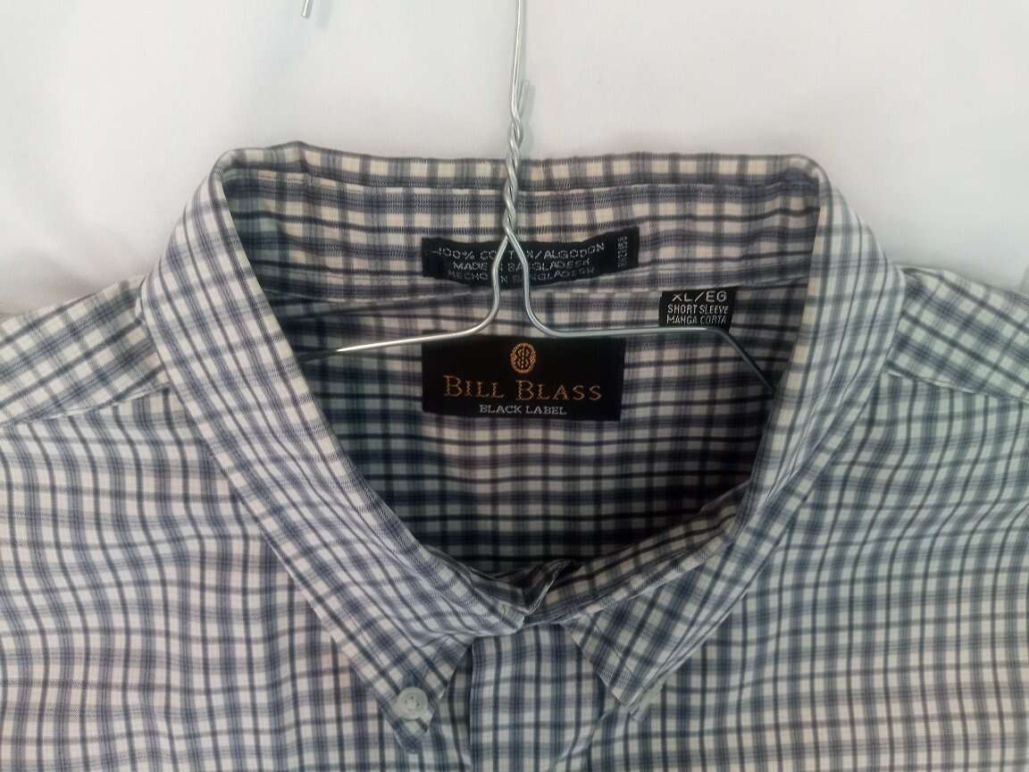 This is a men's Bill Blass Black Label XL short sleeve in 100% cotton. It has a front pocket with button. There are no stains, or missing buttons. There is one small hole on the back side of the left sleeve, see picture. It is from a smoke-free home. It has just returned from being washed, lightly starched, and pressed. Cash or Venmo only.